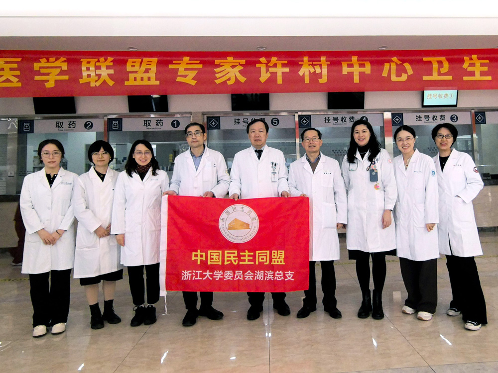 11月29日,浙江大学委员会湖滨总支、海宁市基层委在海宁市许村镇联合开展"同心·健康行"义诊活动。民盟嘉兴市委会副主委沈勤丽、海宁市基层委主委李晓映等到活动现场看望义诊专家。