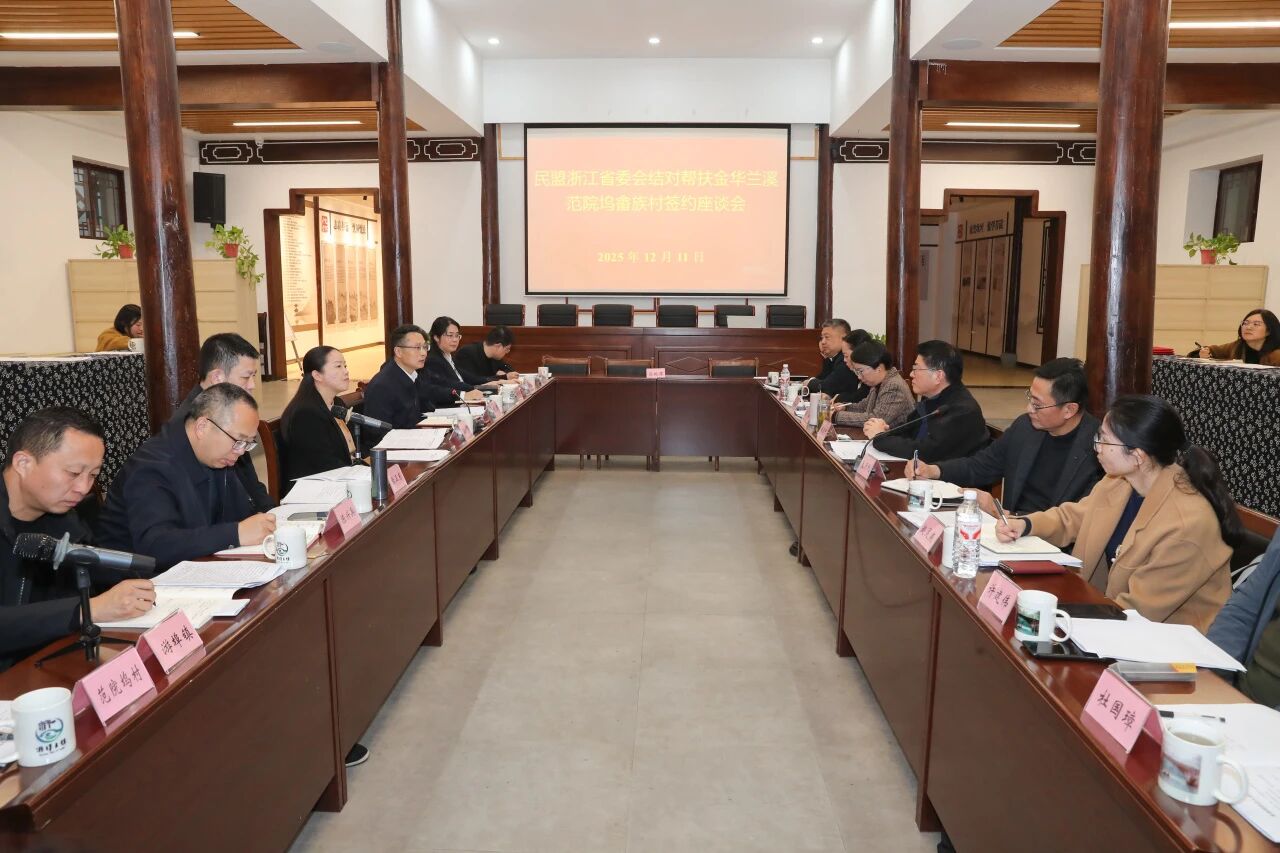 会上,游埠镇党委书记叶浩军介绍了第二轮结对帮扶成效;民盟省委会与范院坞村、兰溪市委统战部签署第三轮助推帮扶工作合作协议;浙江农林大学社会合作处副处长、乡村振兴促进处副处长严少君介绍了范院坞村乡村振兴发展规划(2025-2035);民盟省直属农业农村基层委主委、浙江省动物疫病预防控制中心主任赵灵燕,民盟社会服务工作专家库成员、浙江大学城乡规划设计研究院总规划师许建伟,民盟省委会企业家工作委员会副主任、浙江亚仕丽体育文化发展有限公司董事长徐亚丽,以及兰溪市文旅、农业、资规等单位负责人结合实际,从产业提质增效、发动村民参与、整合资源要素、推动农文旅融合等多方面畅所欲言,提出了许多思路和建议。
