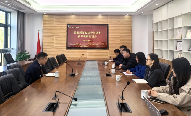 12月29日,浙江农林大学委员会举行青年教师座谈会,浙江农林大学总支主委、副校长徐爱俊,副主委冯海林、申亚梅,45周岁以下青年盟员教师代表参会。